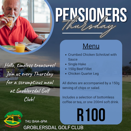 Groblersdal Gholfklub Restaurant bied ‘n a-la-carté spyskaart en bedien ontbyt, middag- en aandete. Ons het  weeklikse “Specials” vir die “Halfway House Lunch”. Die restaurant kan ook geskakel word vir wegneemetes.